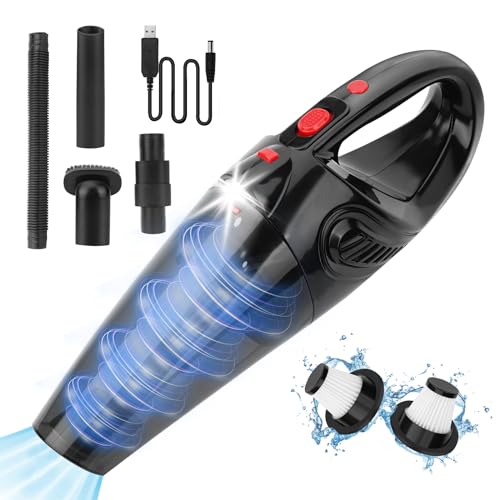 Handheld Car Cordless Vacuum Cleaner: 16000Pa Powerful Mini Hand Held Vacuum Cleaners - 6000mAh Portable Handheld Vacuums with 3 Filters - USB Rechargeable Vacuuming Wireless for Car Pet Hair Bed Home
