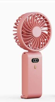 Spiritzohic Hand Held Fan, Portable Handheld Fan USB Rechargeable Fans with 5 Speeds Mini Foldable Fans USB Handheldfan Desk Desktopfan with LED Display for Office Home Travel Outdoor Use(Pink)