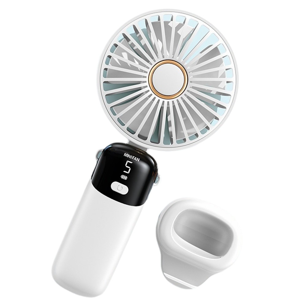 Jsdoin Hand Held Fan,Portable Handheld USB Rechargeable Fans with 5 Speeds,Battery Operated Mini Fan Foldable Desk Desktop Fans with LED Display for Home Office Bedroom Outdoor Travel (White)