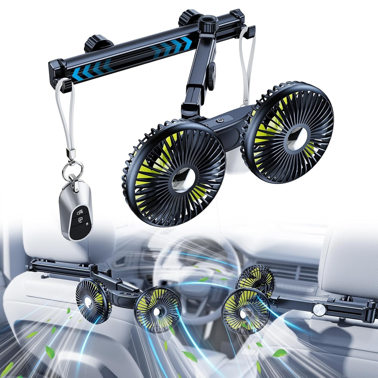Car Fan with Extension Arm,Battery Powered Usb C Rechargeable CarSeat Fans Powe
