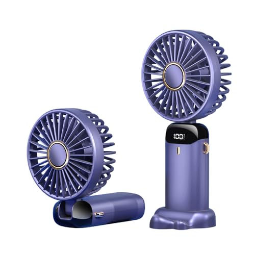 Jsdoin Hand Held Fan,Portable Handheld USB Rechargeable Fans with 5 Speeds,Battery Operated Mini Fan Foldable Desk Desktop Fans with LED Display for Home Office Bedroom Outdoor Travel (DarkBlue)