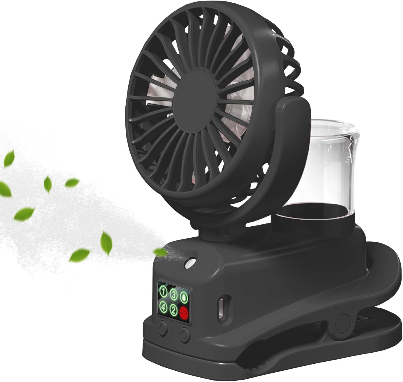 WUDEUI Mini Portable Clip on Misting Fan, USB Rechargeable Desk Fans, 4 Speed Adjustable Cooling Spray Fan for Summer Home Stroller Office and Outdoor (Black)