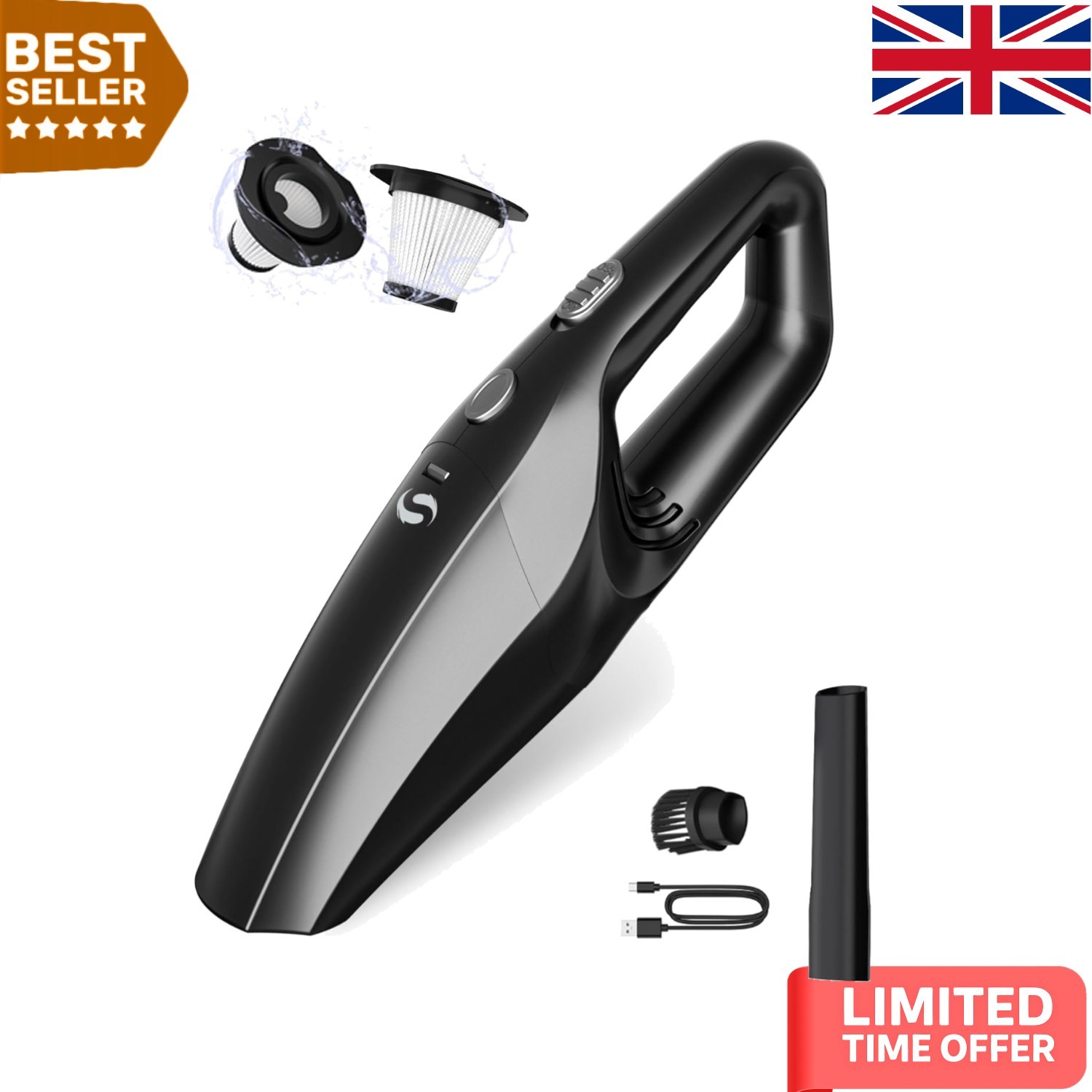 Rechargeable Handheld Vacuum Cleaner with Powerful Suction & Accessories - Black