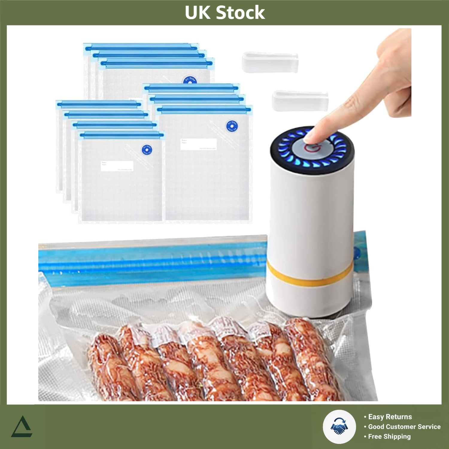 Portable Rechargeable Handheld Food Vacuum Sealer Kit with 10 Reusable Bags