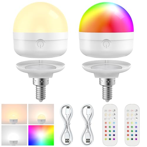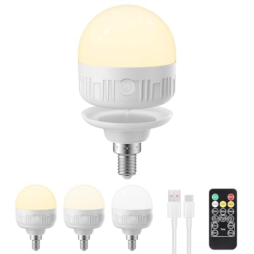 E14 USB Rechargeable Light Bulb with Timer and Remote, Dimmable Battery LED Lig