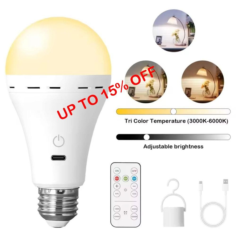 E27 USB Rechargeable Light Bulb with Timer and Remote, Dimmable Battery Light B