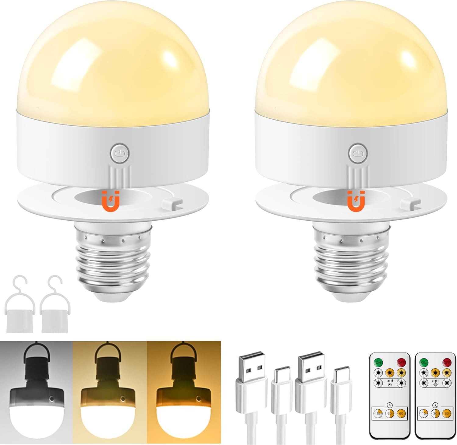 2X(USB Rechargeable Light Bulb with Remote for Home Outage, Hanging LED3335