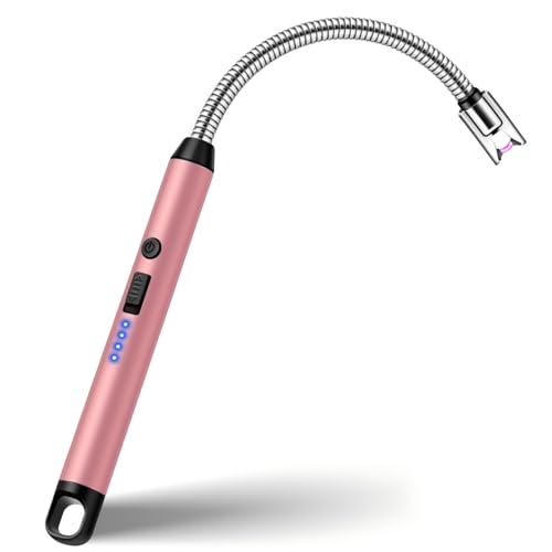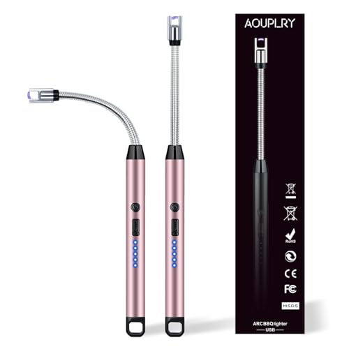 Aouply Candle Lighter, Rechargeable USB Electric Lighter, Windproof Flameless, LED Display, Battery Indicator for BBQ, Grill, Camping, Fireplace, Stove, Parties(Pink)
