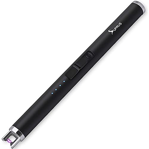 SUPRUS Candle Lighter Electric Arc Lighter Rechargeable USB Lighter Flameless Plasma with Safety Lock Switch for Camping BBQ Cooking (Black)