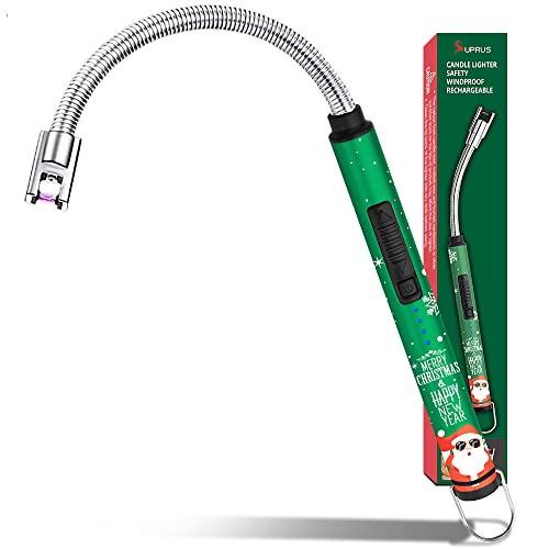 SUPRUS Candle Rechargeable Electric Arc Lighter Stainless Steel Housing & Hanging Hook with 360° Flexible Neck (Christmas Green)