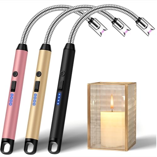 3 Pack Electric Lighter, Long Reach Candle Lighters USB Rechargeable, Arc Plasma Lighter Windproof and Flameless for BBQ, Candles, Grill and Camping