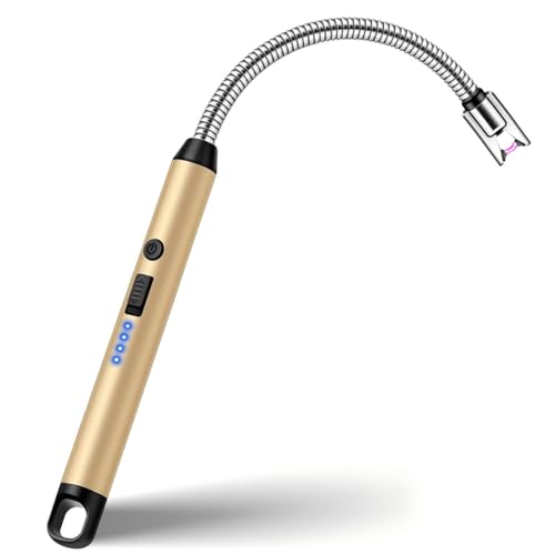 VEHHE Electric Candle Lighter, USB Rechargeable Arc Lighter with Battery Display LED Long Flexible 360º Windproof for Kitchen, Barbecue, Gas Stove Candle, Camping, Gold