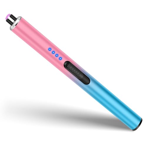 Electric Lighter Rechargeable USB, Candle Lighter Long Reach for Camping and Hiking, Windproof and Flameless, Long Slim and Lightweight Design, Easy to Carry (1 Pack Pink/Blue Gradient)