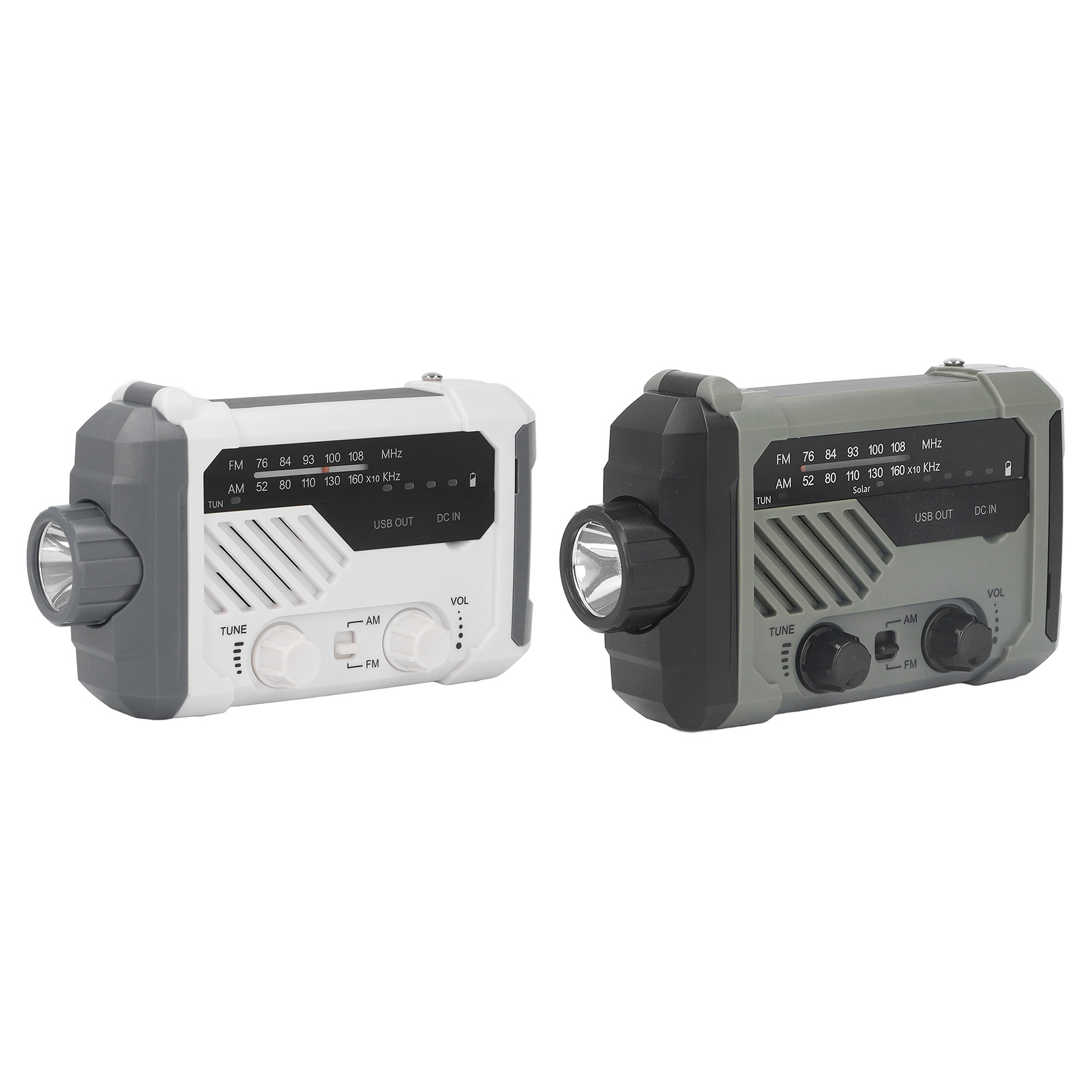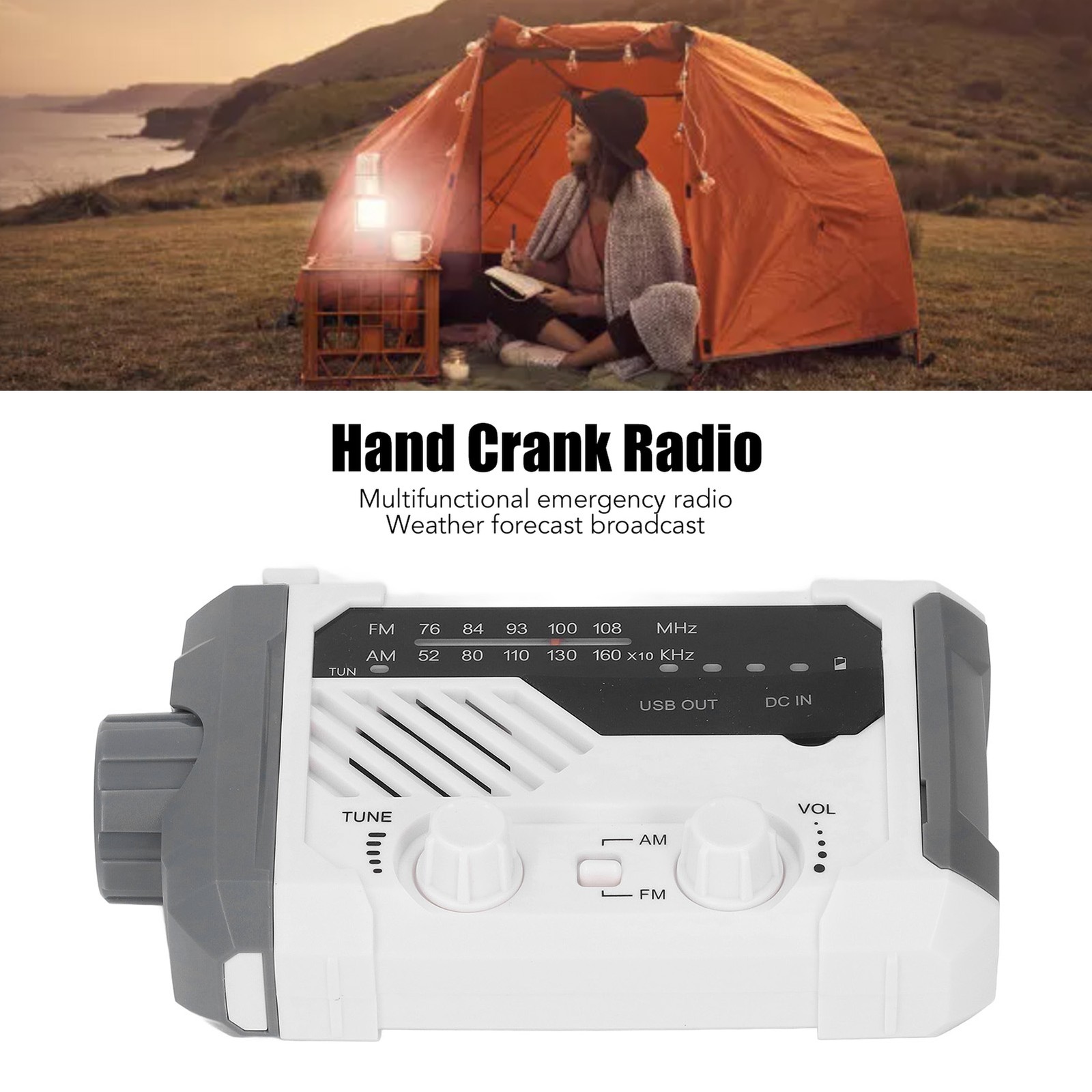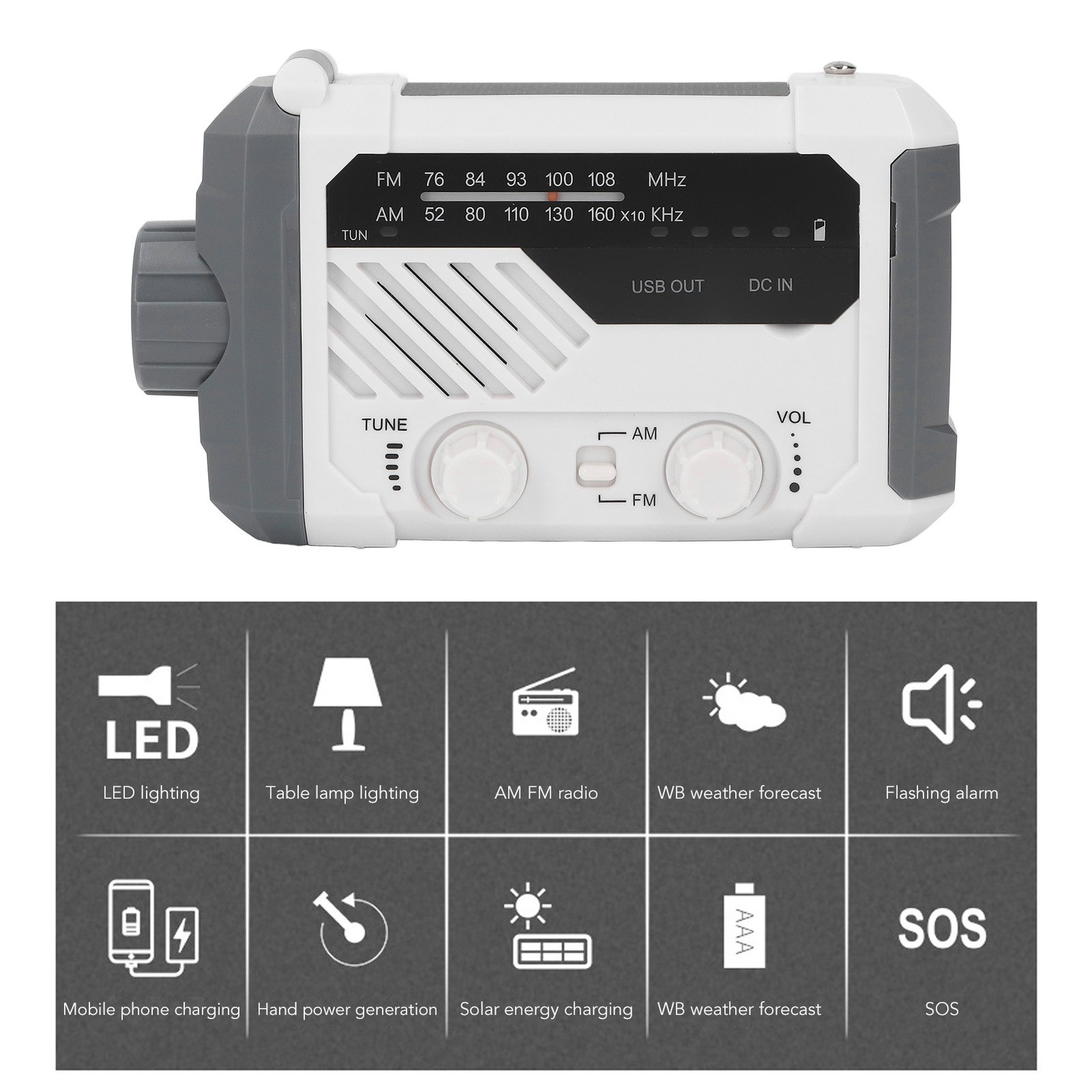 White Solar Hand Crank Radio Multifunction AM FM USB Rechargeable Power Bank