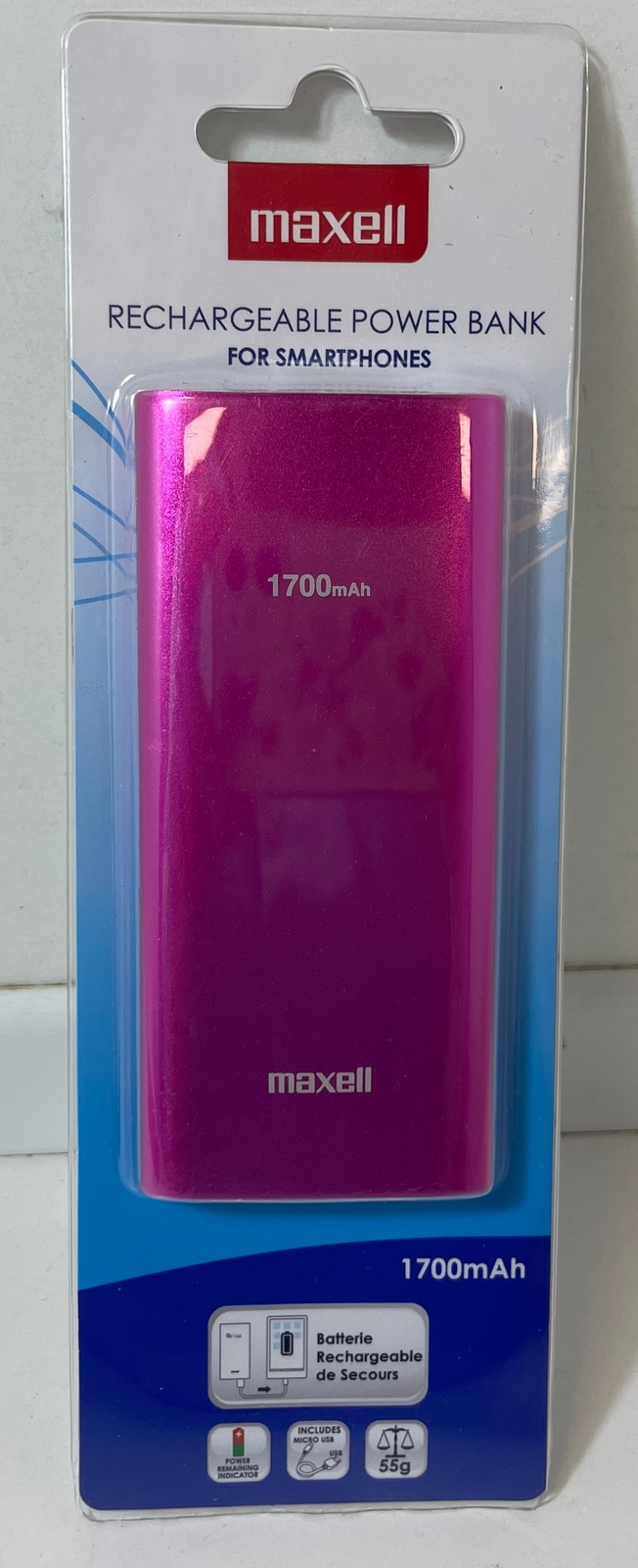 Maxell Rechargeable Power Bank 1700mAh for Smartphones Pink - NEW