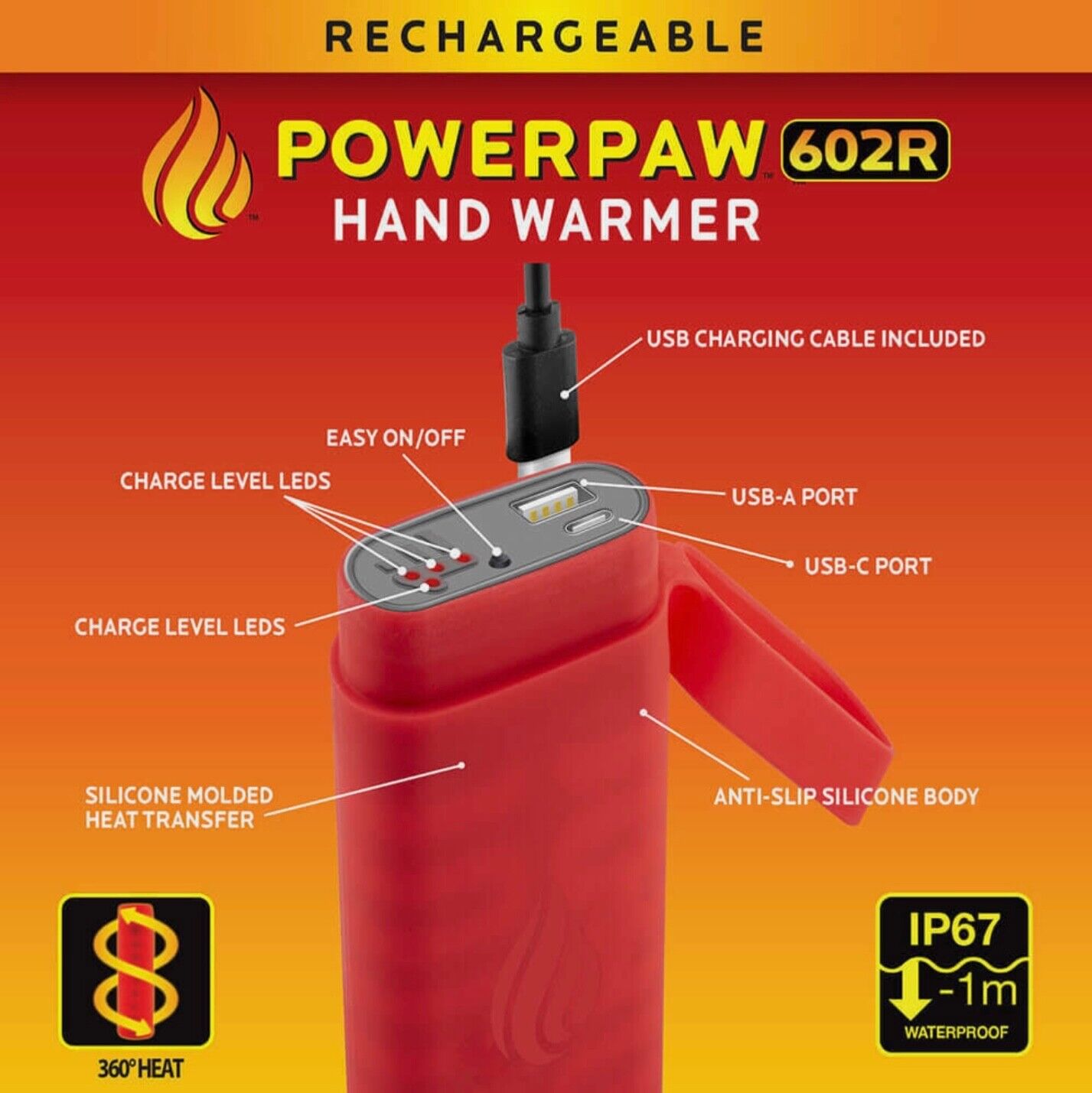 PowerPaw 602R Rechargeable Hand Warmer Power Bank Phone Charger IP67 Waterproof