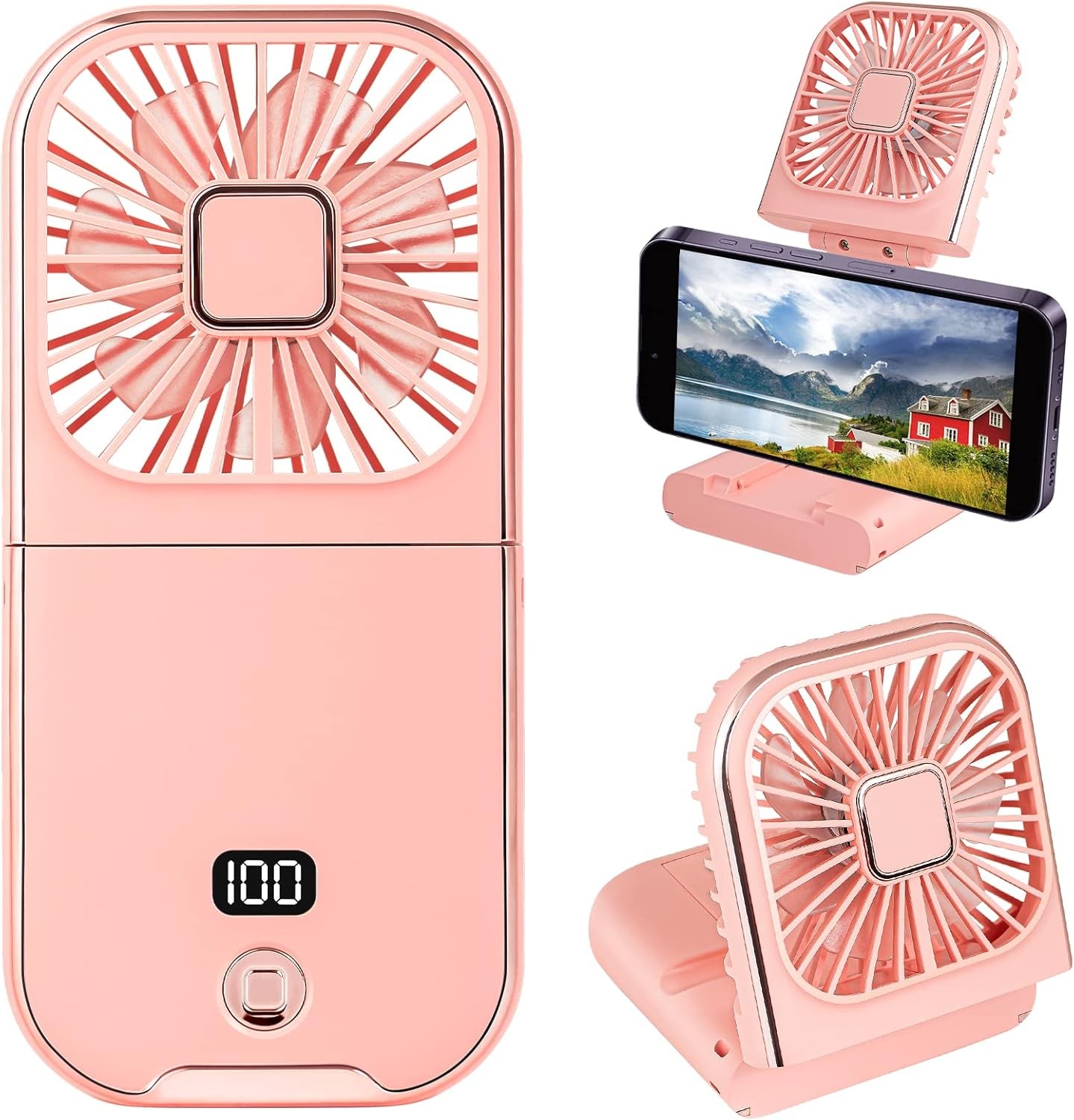 Folding Handheld Fan, Mini Portable Personal Fan USB Rechargeable Power Bank Fa