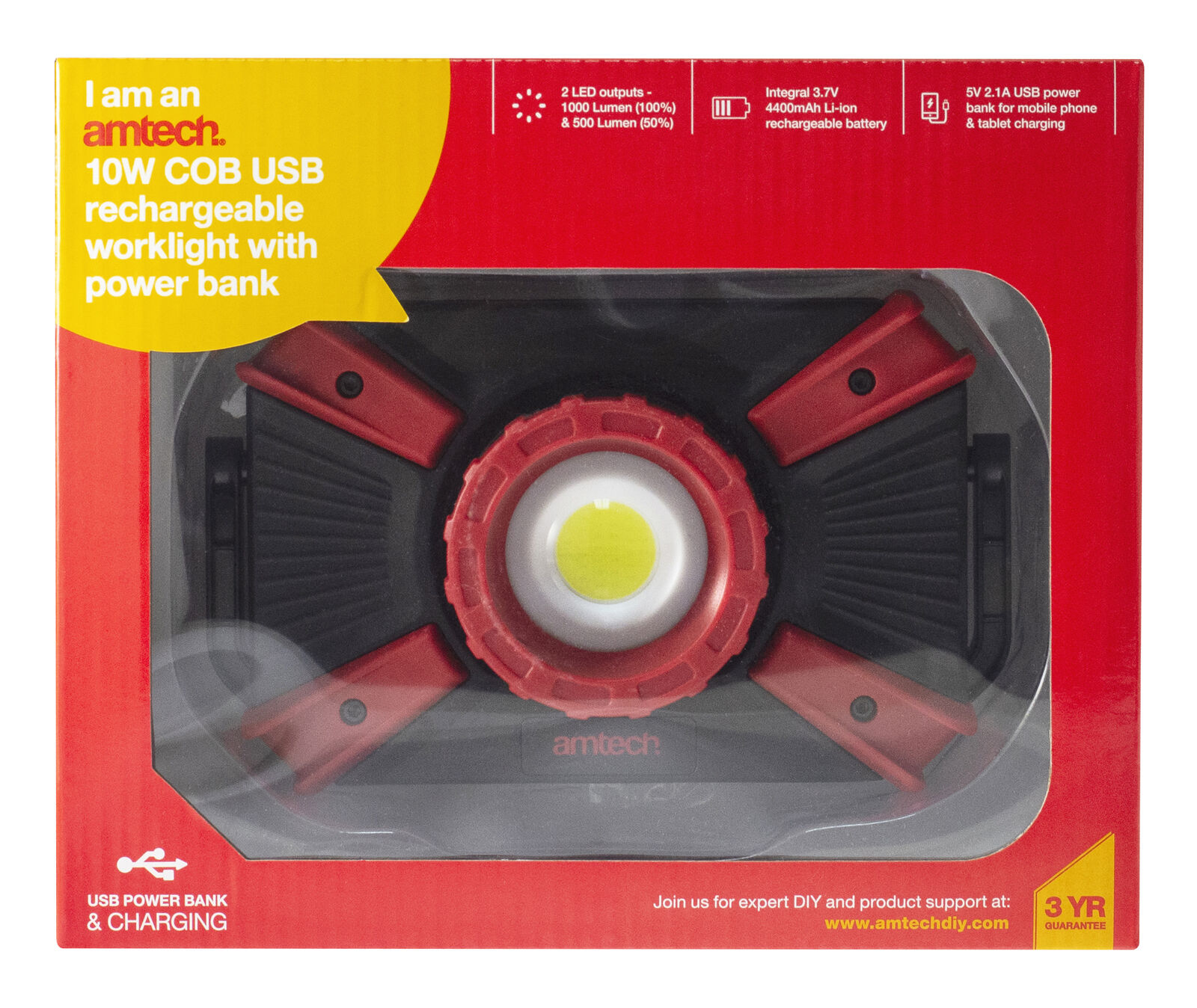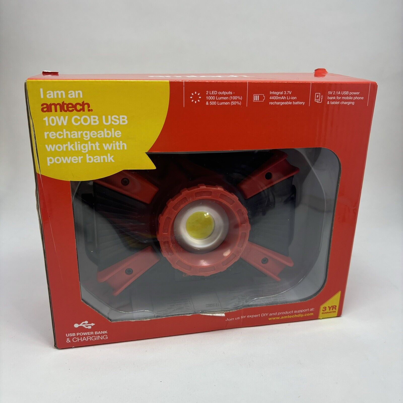 Amtech 10W COB USB Rechargeable Worklight with Power Bank - 2 LED S8200 New