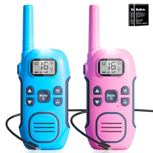 NXGKET Walkie Talkies for Kids Adults Long Range, PMR446 Rechargeable 2 Way Radios 16 Channels with 1200mAh Li-ion Battery, USB-C Cable, VOX for Boys Girls Outdoor Camping Hiking 2 Pack (Blue & Pink)