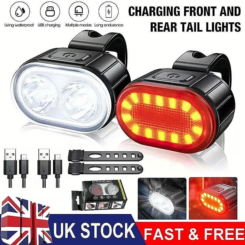 2PCS Mountain Bike Lights USB Rechargeable Bicycle LED Torch Front Rear Lamp Set