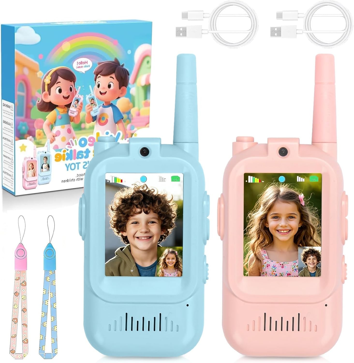 Joygoodta 2Pcs Video Walkie Talkies, Rechargeable Kids Walkie Talkies with Real-Time Video Call, Clear 2.0 in Screen, Fun Toy for Indoor Outdoor Games