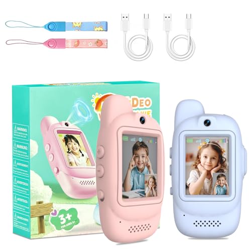 Video Walkie Talkies for Kids, 2 Pack Rechargeable Kids Video Walkie Talkies with Screen Display & Voice Effects, Indoor Outdoor Toys for 3-12 Years Boys Girls Birthday Presents (Blue/Pink)