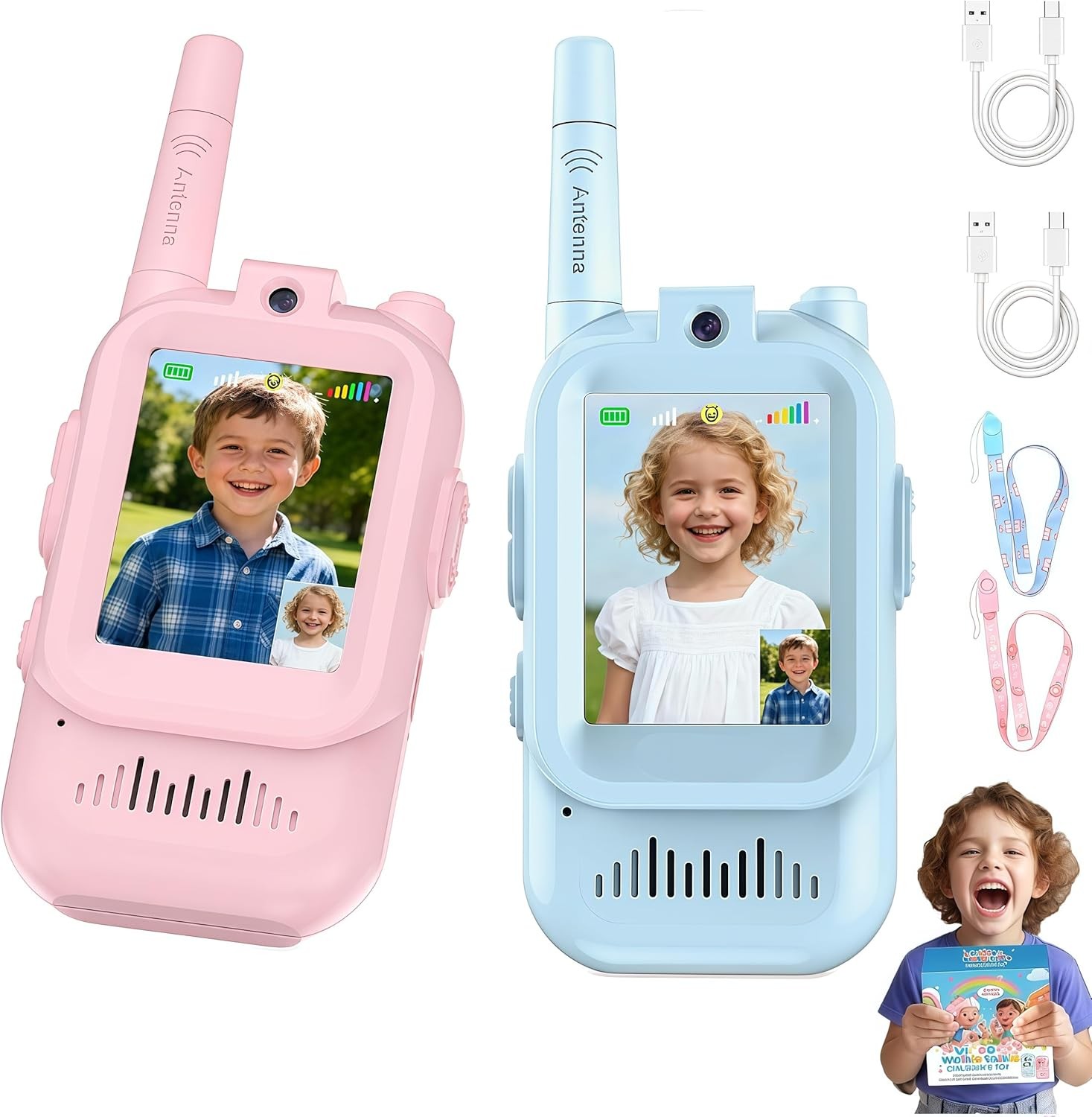 Video Walkie Talkies for Kids, 2 Pack Pink+Blue Rechargeable Walkie Talkies wit