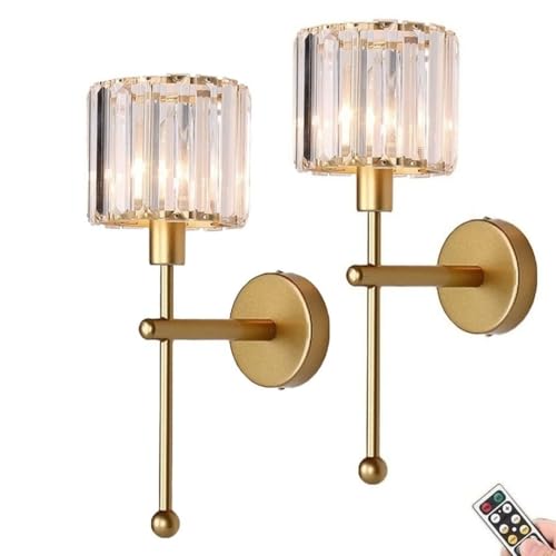 LOHAS-LED Battery Operated Wall Sconces Set of 2, Rechargeable Wall Lights Remote and Dimmable, Sconce Wall Decor Set of 2, Easy Installation, Wireless Wall Lights for Living Room Bedroom, Gold