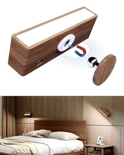 Ulsam 2 Pcs USB Rechargeable Wireless Wall Lights, Wood Motion Sensor Lights In