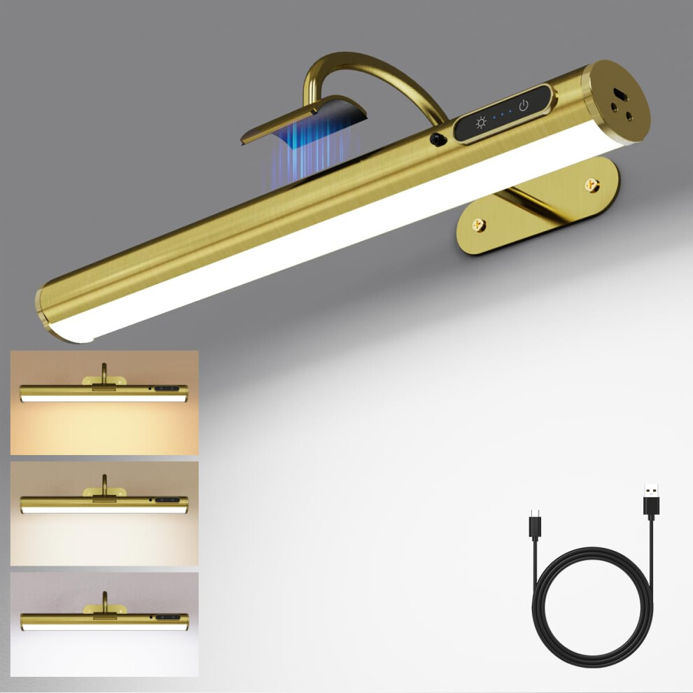 LABOREDUCER Rechargeable LED Picture Lights for Wall,Dimmable Battery Operated Wireless Picture Lights Brass Gold 4000mAh with Remote,Cordless Art Light Adjustable Degree with Magnet,Dart Board Light