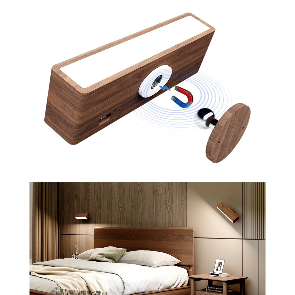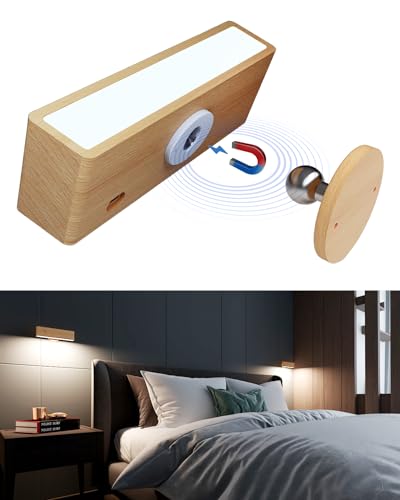 Wireless Rechargeable Wall Lights, Battery Operated Wall Sconce Lamp with Magnetic Aesthetic Wooden Design, Three-Level Dimmable Touch Control Vanity