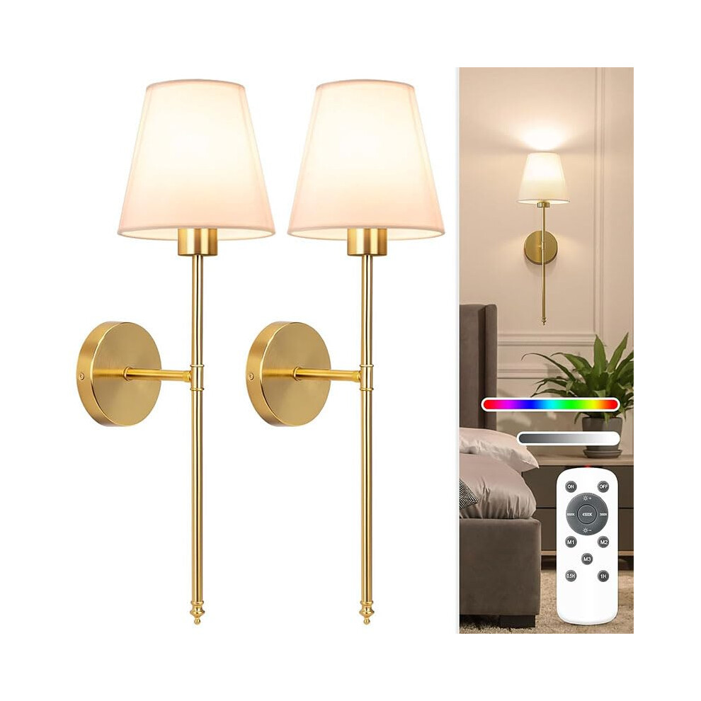 Battery Wall Light Wireless Set of 2, Rechargeable Wall Lights with 5000mAh Dimmable Detachable Charging Bulbs and Remote,3 Color Temperature Wireless Wall Light for Living Room Bedroom Hallway(Gold)