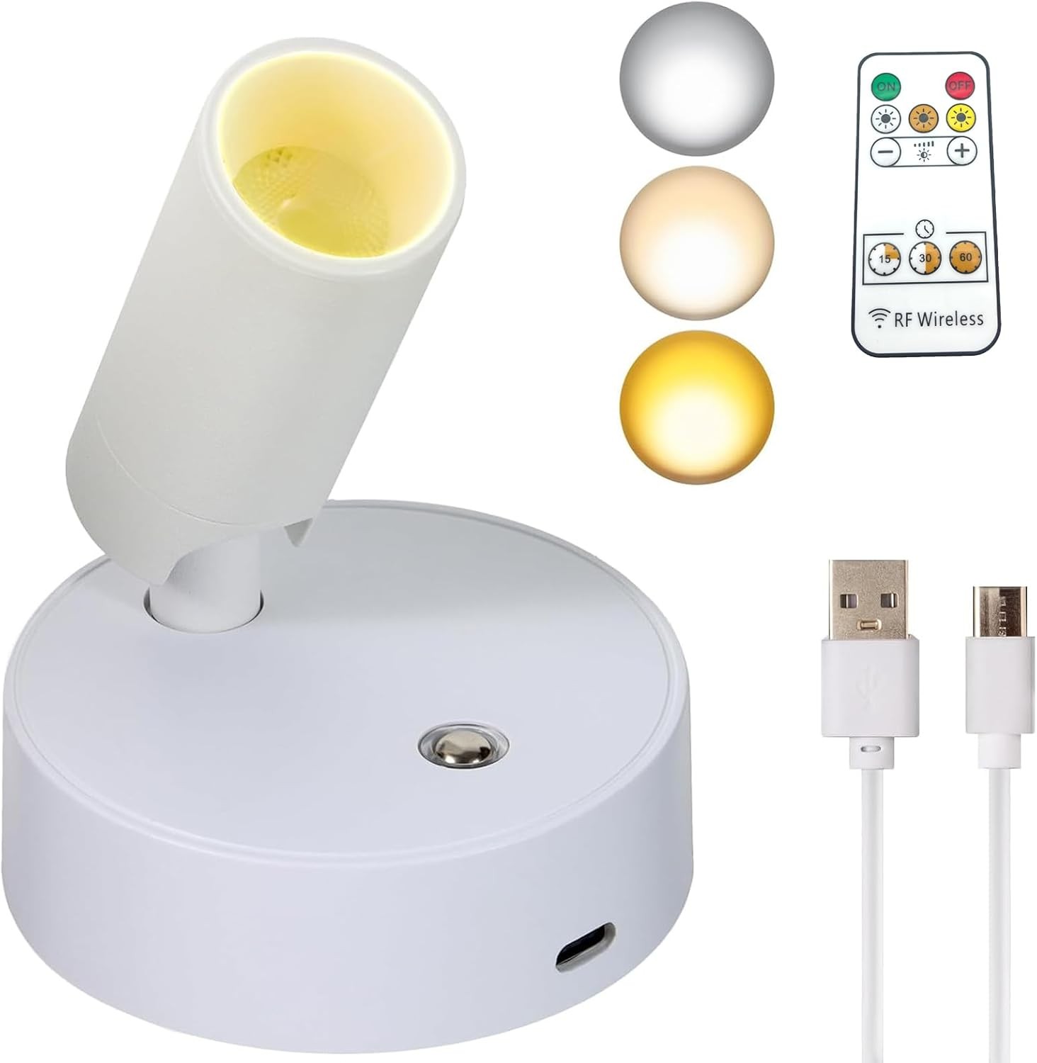 Ounfhtrttk USB Rechargeable LED Lights with Remote 3 Color Temperatures RGB 7 Colorful 360°Rotate Cordless Wall Mounted Light for Home Bedside Bedroom Wireless Portable Night Light Bedside Bedroom