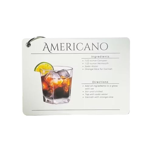Cocktail Recipe Cards - 4 Inch, Mixed Drink Recipes, Bartender Guide | Step By Step Instructions For Bartending Supplies, List, Home Bar Party Beverage & Concoction Manual Accessories