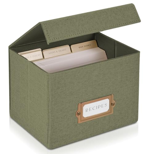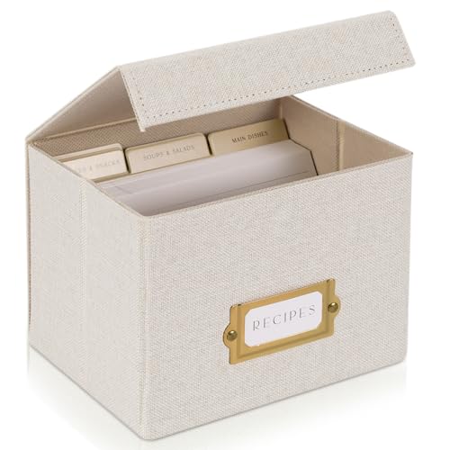 ZICOTO Beautiful Linen Recipe Box - Fits 4x6 inch Recipe Cards to Organize Up to 250 Recipes - Sturdy Card Holder and Great Gift for Any Kitchen - Cards Not Incl.