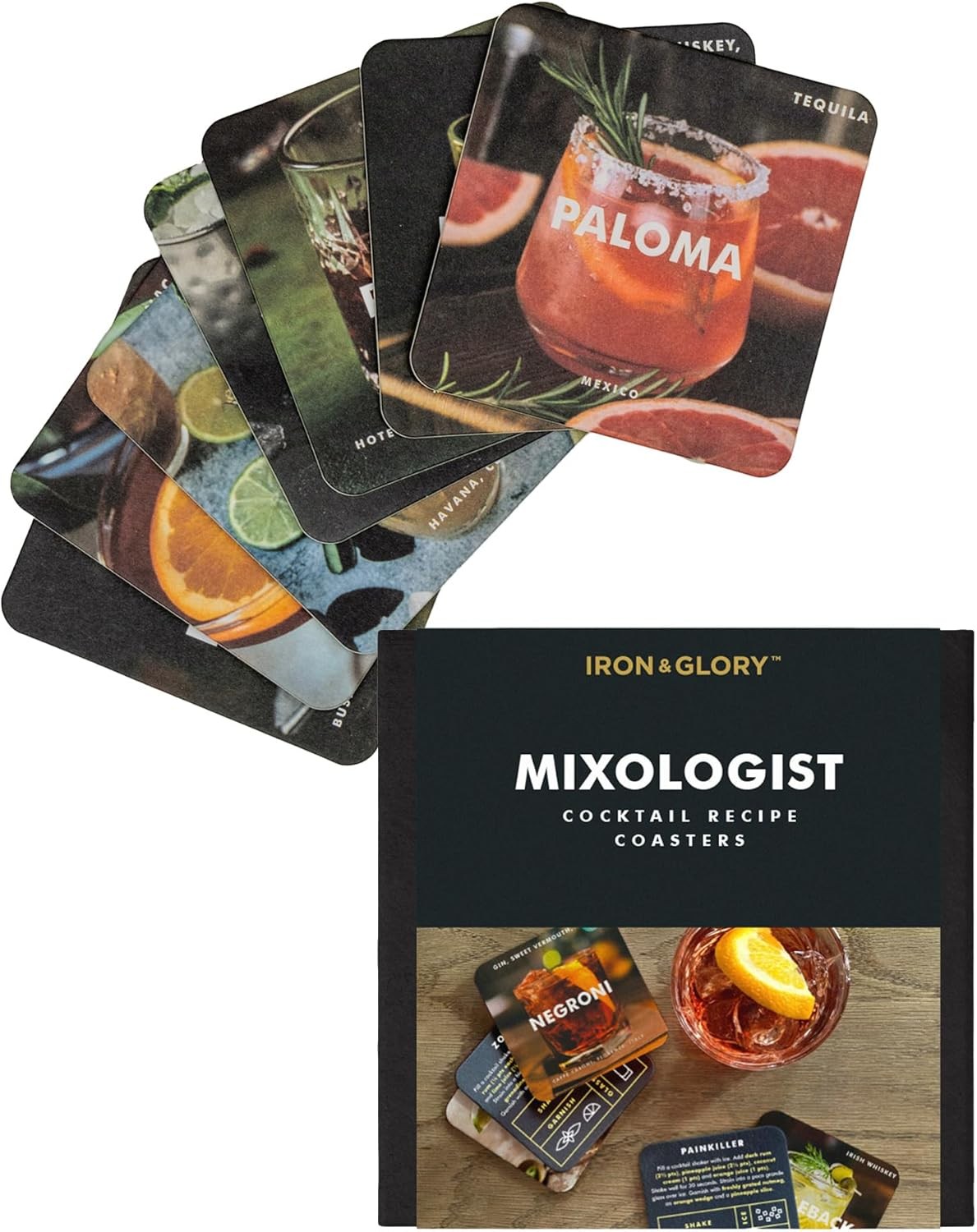 Iron & Glory Mixologist Cocktail Recipe Cards Drink Coasters | Home Bar Accesso