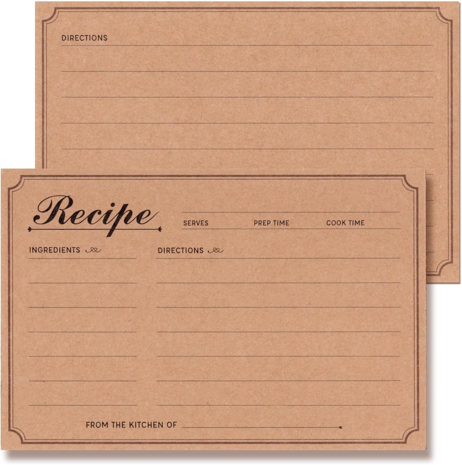 Recipe Cards 4x6 Double Sided, 50-Pack Blank Recipe Cards Kraft, 4 x 6 Inches