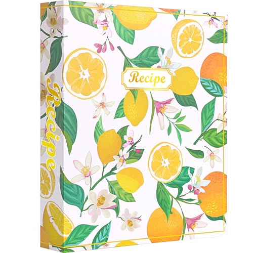 Hihealer Recipe Book Binder -Mothers Day Gifts Large 3 Ring A4 Kit to Write in Your Own Recipes with Recipe Pages*115, Recipe Cards*60, Unique Gifts Christmas Gifts for Women Mom Grandma (Lemon)