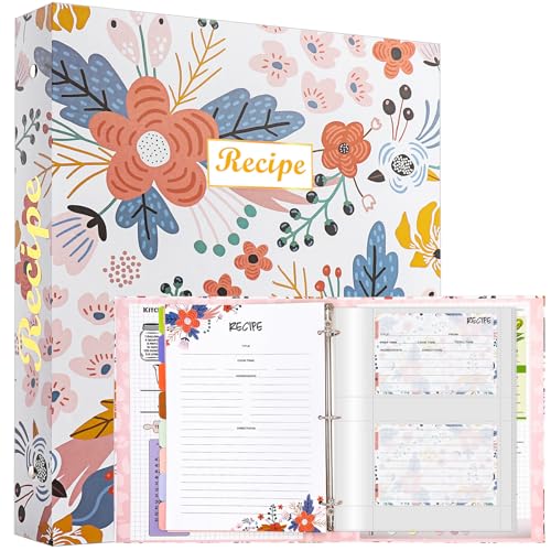 Hihealer Recipe Book Binder -Mothers Day Gifts Large 3 Ring A4 Kit to Write in Your Own Recipes with Recipe Pages*115, Recipe Cards*60, Unique Gifts Christmas Gifts for Women Mom Grandma