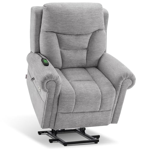 MCombo Riser and Recliner Chairs for Elderly, Electric Power Lift Chairs for Living Room, Brown Lift Recliners with Heat & Massage, Extended Footrest, USB Ports, Fabric 7040 (Grey, Medium)