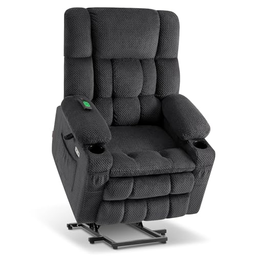 MCombo Dual Motor Riser Recliner Chairs for Elderly, Electric Lift Recliner for Living Room, Infinite Position, Heat & Massage, Extended Footrest, USB Ports, Fabric 7896 (Dark Grey, Large)