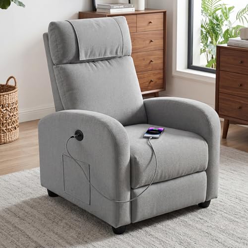 BonVache Recliner Armchair For the Elderly,Lounge Sofa Seating with Type C+USB Ports,High Back Chairs with Dual Side Pockets,Adjustable Leg Rest,for Living Room Bedroom Reading TV,Light Gray