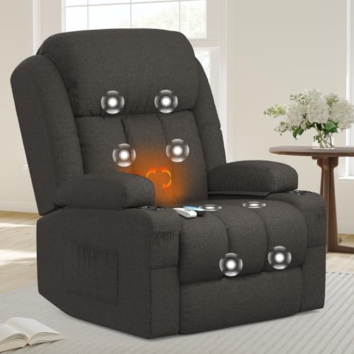 Merax Large Power Lift Recliner Chairs with Massage and Heat for Elderly, Heavy Duty and Safety Motion Reclining Mechanism Electric Wide Recliners with USB Ports (Dark Grey)