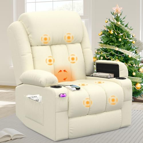 Jaxenor Electric Recliner Armchair, Reclining Chairs for Elderly, Large Riser and Recliner Chairs for Living Room, Lift Heated Massage Chair with Storage Pockets, Heavy Duty (Beige)