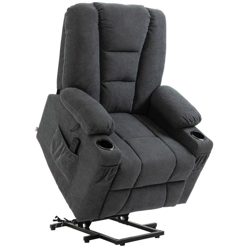 HOMCOM Oversized Riser and Recliner Chairs for the Elderly, Fabric Upholstered Lift Chair for Living Room with Remote Control, Side Pockets, Cup Holder, Charcoal Grey
