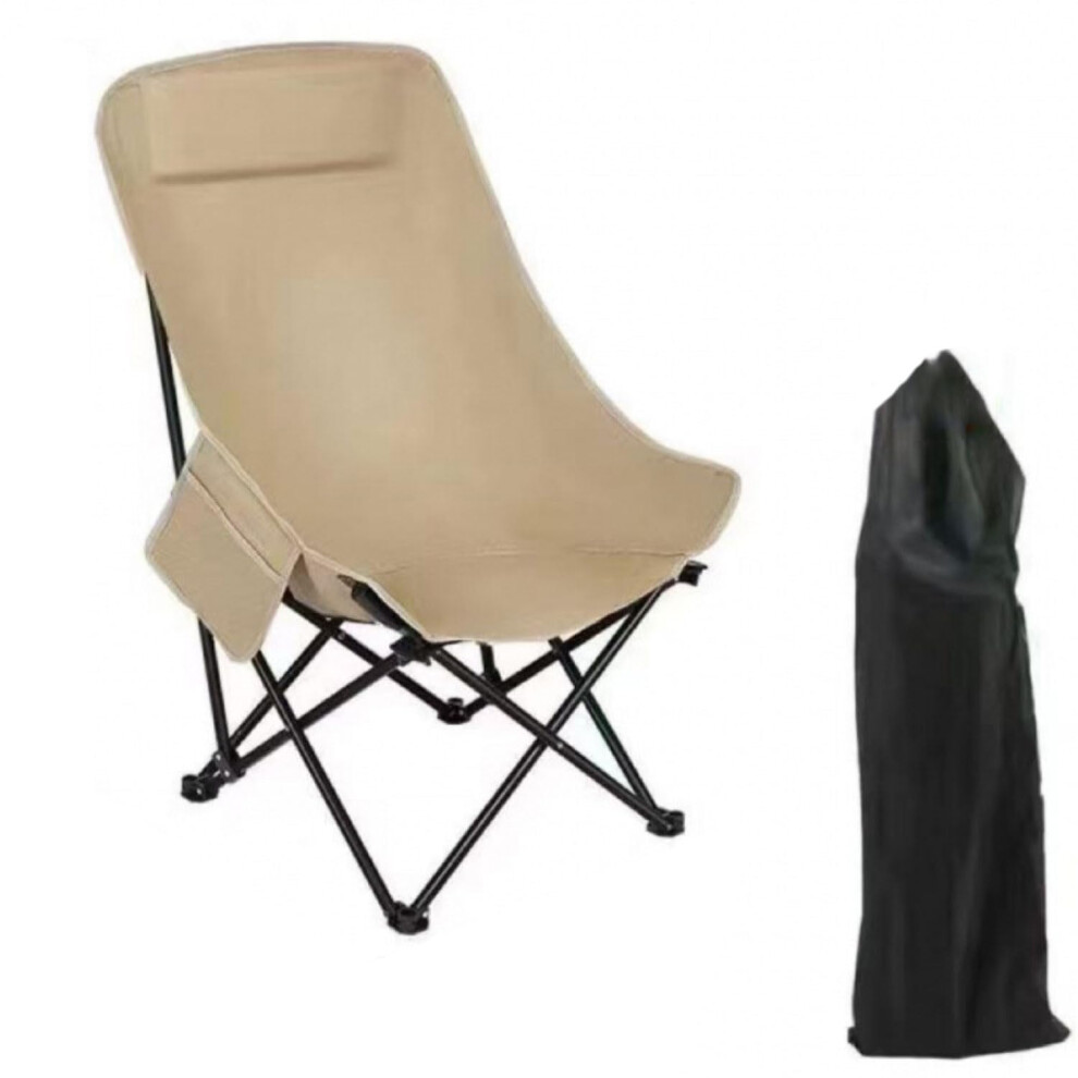 High Backrest Reclining Folding Camping Chairs With Side Pocket 600D Oxford Fabric 200 Kg Khaki 48x82 Cm