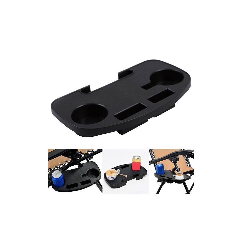 Deck Chair Cup Holder for Reclining Chairs, Camping, Beach, Backyard, Black Plastic Drink Snack Caddy with Card Slots
