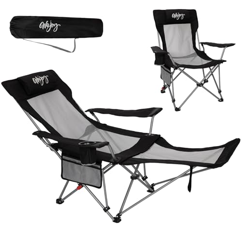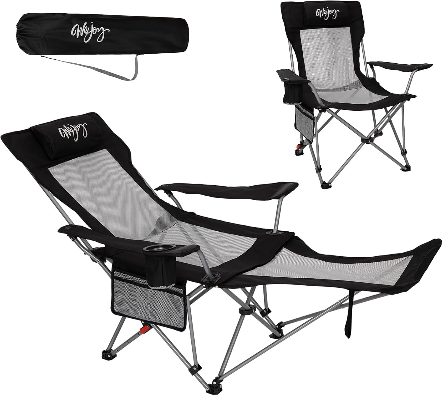 #WEJOY Reclining Camping Chairs with footrest,4-Position Adjustable Heavy Duty 180kg Capacity Portable camping chairs for adults folding beach chair with Headrest Cup Holder Carry Bag