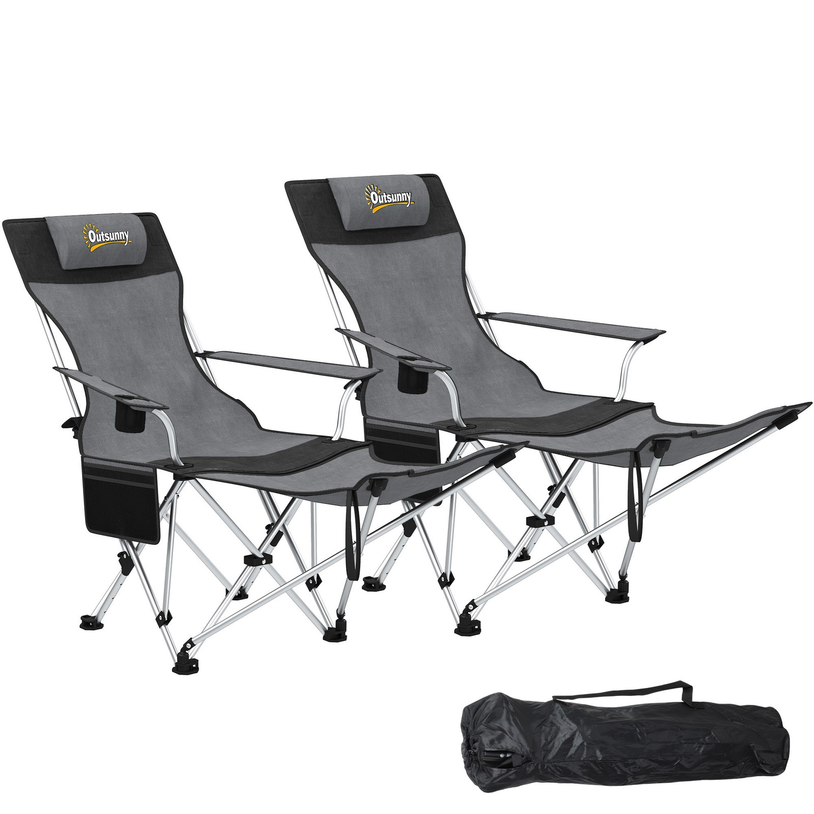 Outsunny Set of 2 Reclining Camping Chairs, Grey and Black