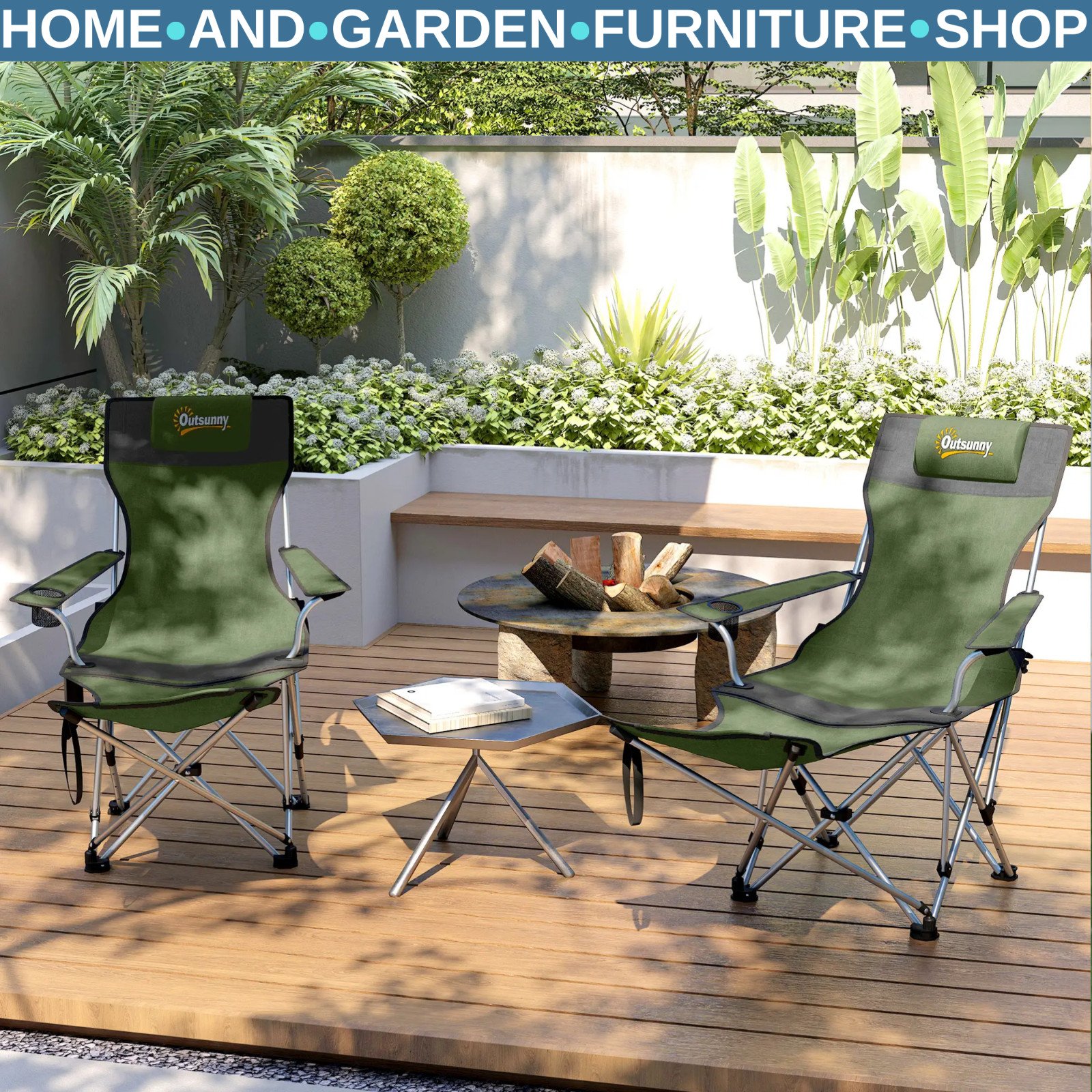 Outsunny Set of 2 Reclining Camping Chairs, Olive Green and Grey